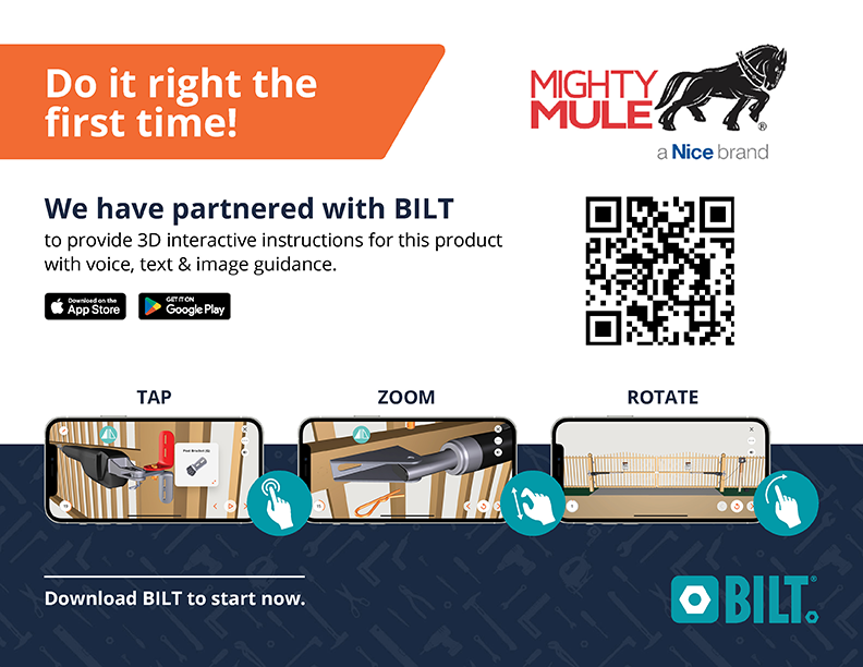 BILT 3D Interactive Instructions: Use the BILT app for step-by-step 3D installation directions.